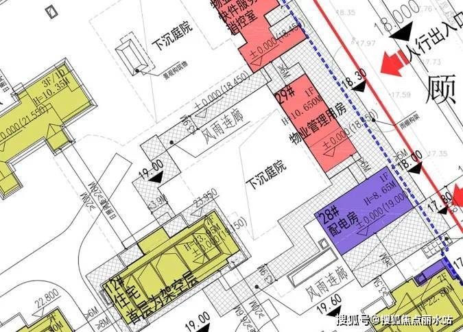 另外,项目在东侧主出入口侧打造有下沉庭院和风雨连廊。