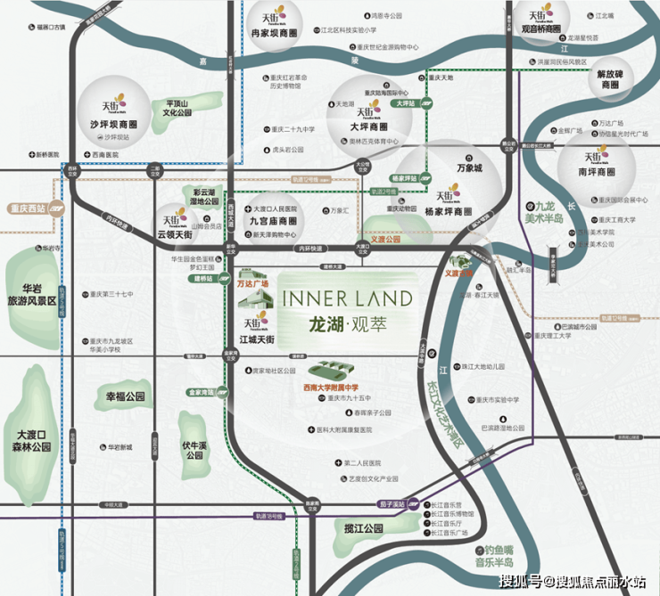 可见重庆的这座龙湖观萃,依然贯彻了【核心城市+黄金地段】的布局逻辑,选择了“南重庆城市新核”来落地。