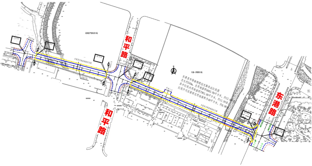 东港菜市场南侧规划支路项目拟选址于东港路至规划支一路,拟选用地面积为8003.09平方米,道路总长约549米。