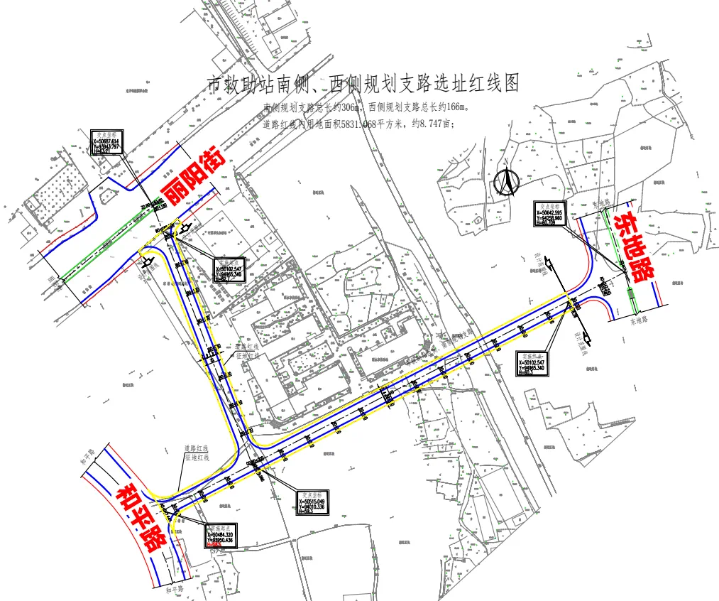 市救助站西侧、南侧规划支路项目拟选址于城东片区,拟选用地面积为5831.068平方米,其中南侧规划支路总长约306米,西侧规划支路总长约166米。
