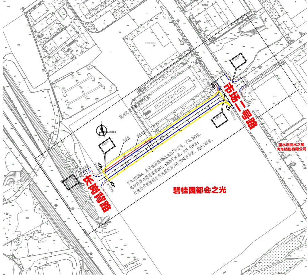 银河路项目拟选址于市场一号路至长岗背路,拟选用地面积为3989.9257平方米,道路总长约229米。