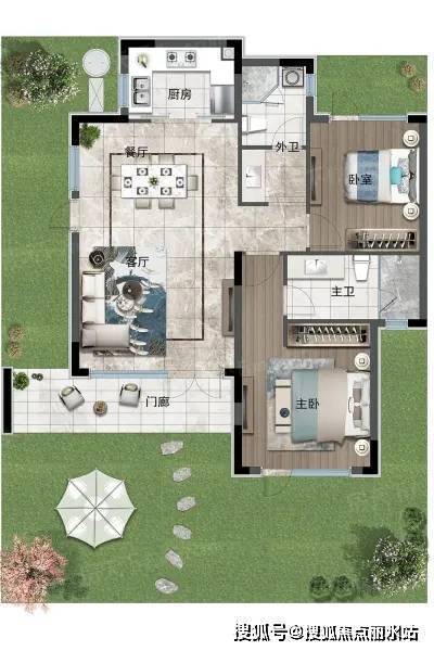 屋前屋后双院设计,户户皆享庭院,暇时于前庭打理花圃、在后院种下菜苗,将“晨兴理荒秽,带月荷锄归”的浪漫,载入生活。