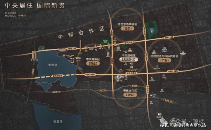 紫金·翡丽甲第雄踞园区发展重点区域——中新合作区板块,以“两横两纵”擘画中央居住版图,承载园区由西向东深化发展的趋势,更是城市精粹资源高度聚合之地。
