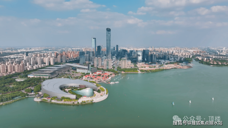 东方之门、圆融广场、摩天轮、博览中心等,勾勒园区现代化璀璨天际线