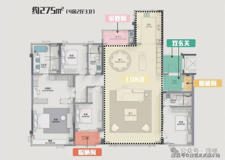· 全系双套三卫横厅:全系双套房,主卫功能5件套(双台盆),6m-7.1m超宽巨幕横厅