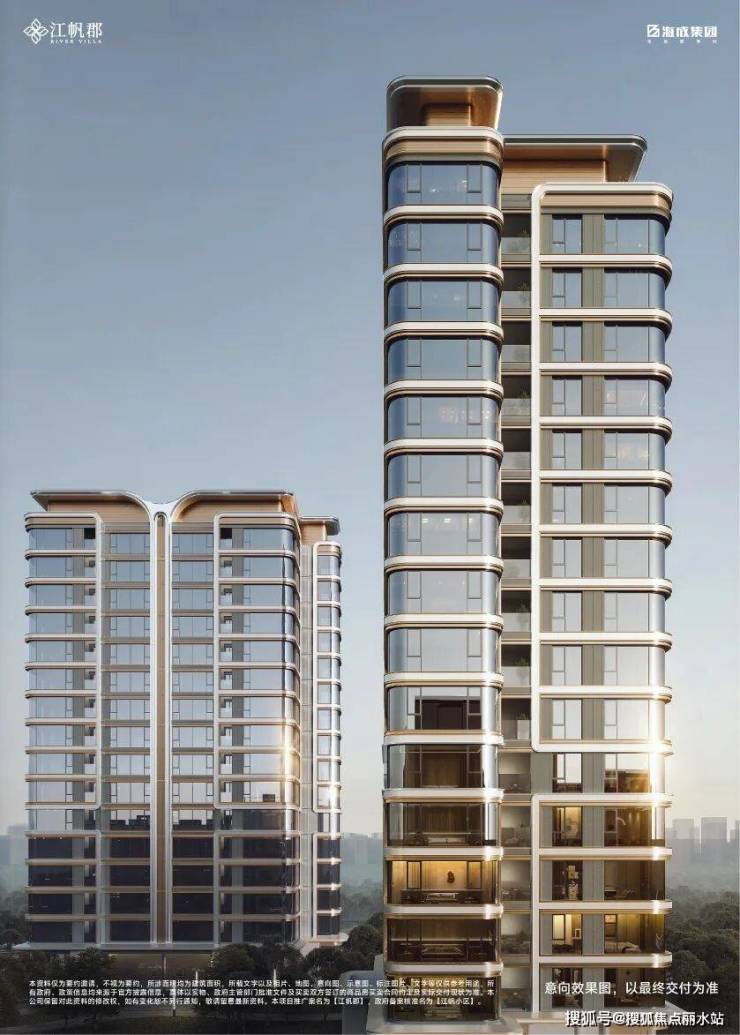 立面美学亮点:鲲鹏展翼 标志性顶冠;江帆流线 海成创新工艺;大面积落地窗 全景升配。