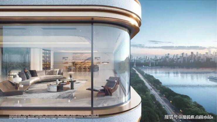 [揽江]系列产品采用了三方位观景的设计,大面积环幕落地玻璃,至多可观赏约10km的江园、湖景,“每个房间都是主景观面”。[江帆郡]以空间与视野的延伸,重塑了北滨亲江生活的旗舰姿态。