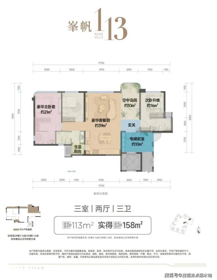 建面约113㎡,实得面积约158㎡,约21㎡主卧套房、约16㎡次卧套房、约39㎡客餐厨,而且它还是一个全生命周期的户型,从二人世界、到三口之家、再二胎家庭,都能完美适配。