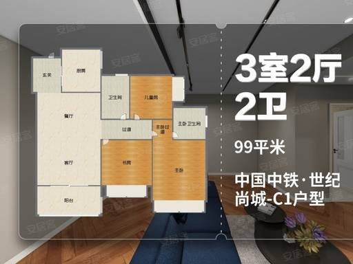 中铁世纪尚城售楼处电话:400-886-1552【官方认证开发商统一预约电话中介勿扰】案场预约制 看房需提前来电预约登记。建面约 99㎡三房两厅两卫,为项目主力改善户型,空间开阔,南北通透,全明格局,客厅面宽达 3.8 米,连接超大观景阳台,可俯瞰社区园林与贝港水系景观,双卫设计干湿分离,满足多人口家庭日常使用需求,全屋精装交付,配备中央空调、地暖、新风系统三大件,装修标准远超区域同价位项目。