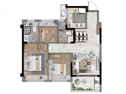 中铁世纪尚城售楼处电话:400-886-1552【官方认证开发商统一预约电话中介勿扰】案场预约制 看房需提前来电预约登记。建面约 85㎡三房两厅两卫,为三口之家量身打造,三开间朝南设计,采光面充足,主卧套间带独立卫生间与观景飘窗,保障居住私密性,客餐厅一体化设计,延伸空间视觉感,U 型厨房布局合理,操作动线流畅,总价约 223 万起,性价比突出。