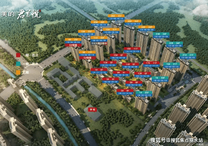 建筑类型:包括板楼和塔楼,住宅建筑共 26 栋,其中 3、4、8、9、10、13、14、15# 为 6F 多层住宅;17、18# 为小高层住宅;1、6、7、11、12、16、19、20、21、22、23、24、25、26 为 25-34F 高层住宅。