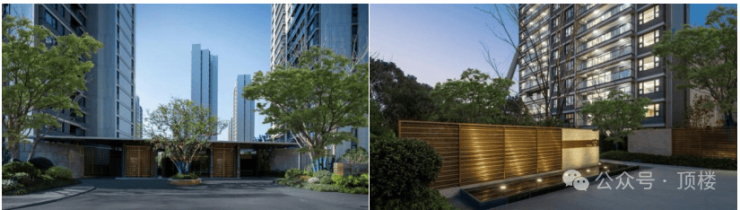 远赴云南甄选的香橼树与丛生朴树共绘入口风景,全冠移植技术让业主即刻享受盎然绿意。