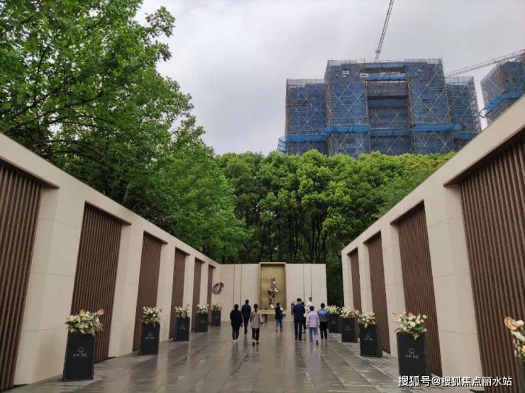 有小姐姐站立一角,专注地拉着小提琴,在鲜花丛中演绎着舒缓的曲调,优美琴声相伴,买房人三三两两陆续步入售楼处。