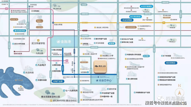 1、区位优势:项目位于东湖高新区金融港板块,板块内有大量的产业就业机会,同时也是光谷核心关山板块与光谷中心城板块的过渡区,可以辐射3个板块。