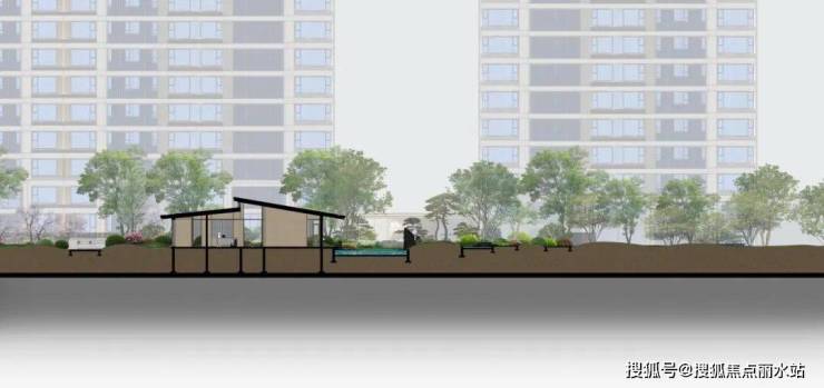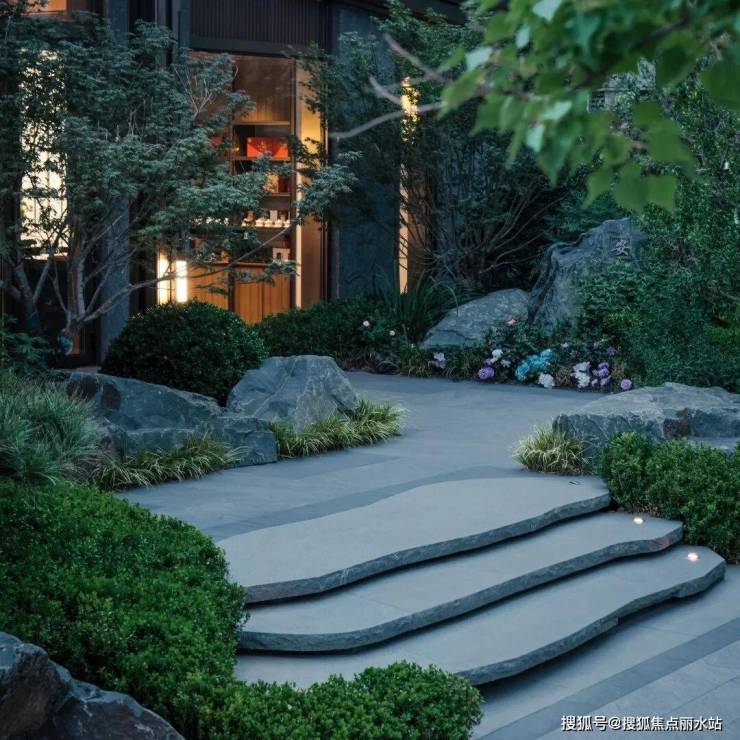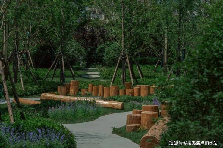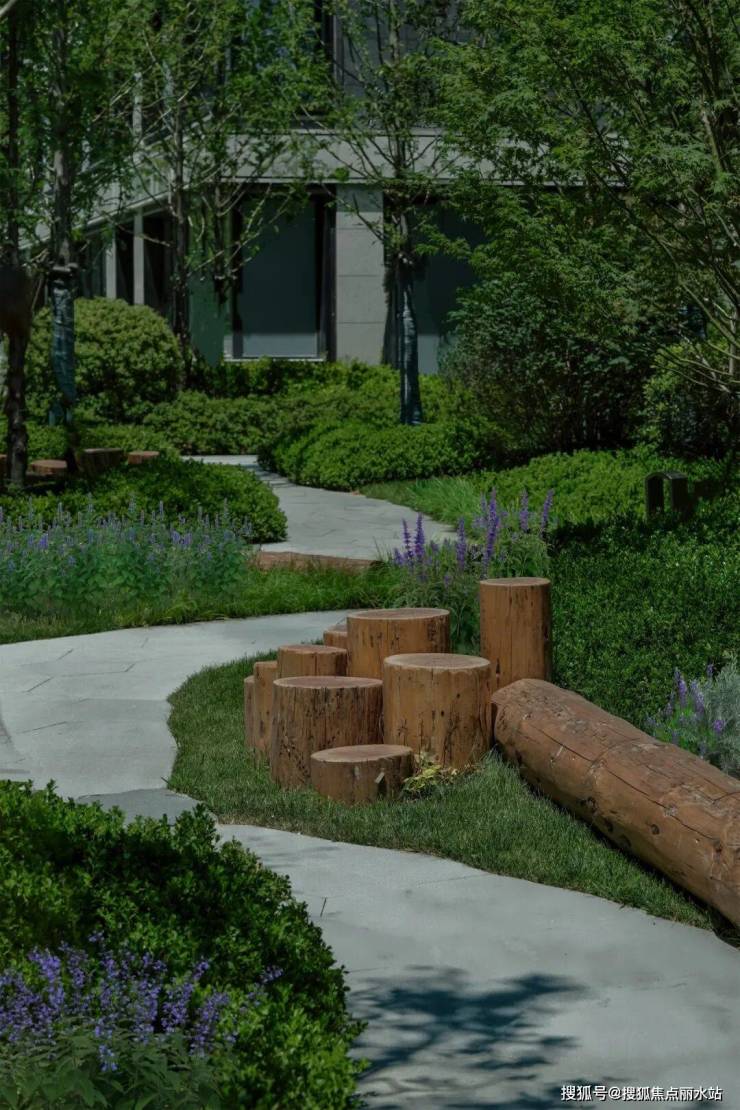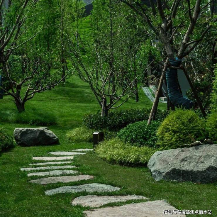 下沉庭院中,禅意小径与景观滑梯共生,打破社区边界,引山涧河谷入宅。