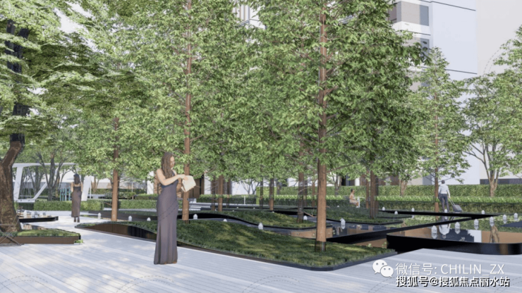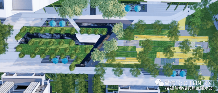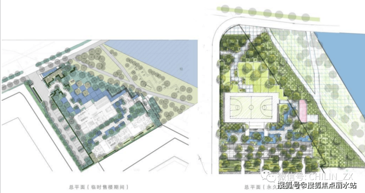 售楼处、样板间:项目借用北侧规划绿地打造临时示范区;展示内容包括临时售楼处与临时样板间,样板间共4套,包括1套交付样板(99㎡)与3套展示样板(125、143、165㎡);另结合东侧河道资源,进行景观的优化提升,扩展示范区景观展示范围。(示范区未来会改造为永久市政公园)示范样板区示范样板区临时样板区和永久市政公园对比