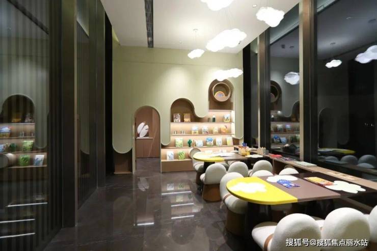 大堂不仅仅提供的尊贵感和归家仪式感,更注重功能性,保利和颂内部设置提供物业服务、亲子阅读教育、业主临时办公、接待于一体的沉浸式体验空间。
