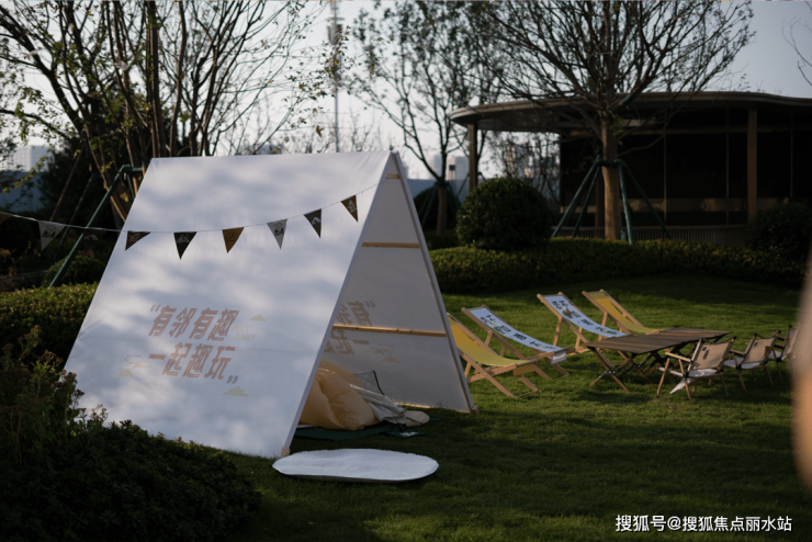 约450㎡的互动式阳光草坪,为业主提供户外休闲、露营、社交等场所。同时打造了海浪形状的廊架空间——晓绿学廊,作为户外休闲的会客厅内配置低吧台以供居民举办雅集活动使用,是以书会友的雅集,也是品茗赏景的客厅,为业主塑造了一种多元化的生活场景和生活方式。