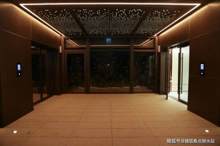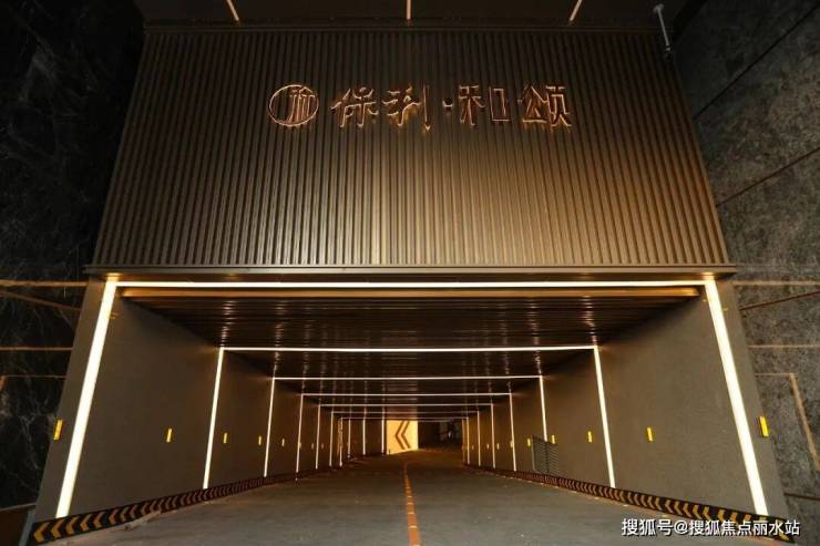 保利和颂的地库交付区也实景展示,地库入口的门楣礼序已拉满,暖色的墙面搭配墙壁上竖向灯带及天顶横向灯带的设计,让归家的业主心情更为愉悦。