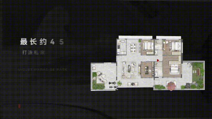 项目精研现代居住美学,以“自由平面”为理念开创最长约45米洄游动线,构建自由空间体验,解锁灵动生活万般可能。