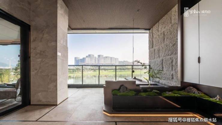 成均台居于紫金山中轴线上,更因先天台地的优势,北侧地势高于水平面约20米,1楼相当于普通四代住宅8楼的高度。设计顺应土地肌底,借势打造无界生活视野,轻松可揽百亩晴雪湖盛景。