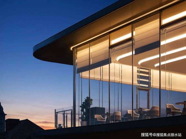 约100m归家大堂以凤凰两翼为造型灵感,与凤凰之声大剧院形成视觉交响,内部采用酒店式圆岛设计,圆岛中间为黄山黑松和秦岭原石组成的景观锚点,既有风水堪舆之妙,又营造出宾至如归的礼序感。