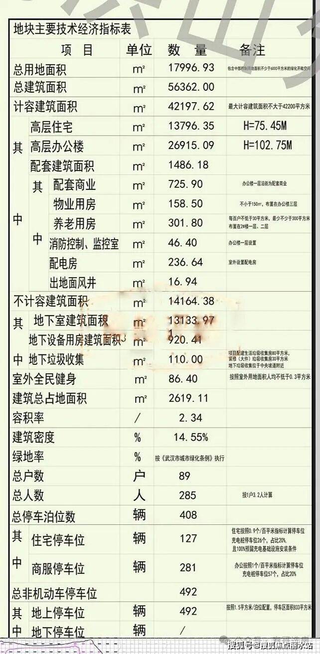调整规划之后,项目规划总用地面积约1.8万方,总建面约5.6万方,计容建面约4.2万方,高层住宅约1.37万方,容积率约2.34,总户数约94户,住宅停车位约127个。计算可知,项目住宅的户均面积约146平,停车位配比约1比1.35。