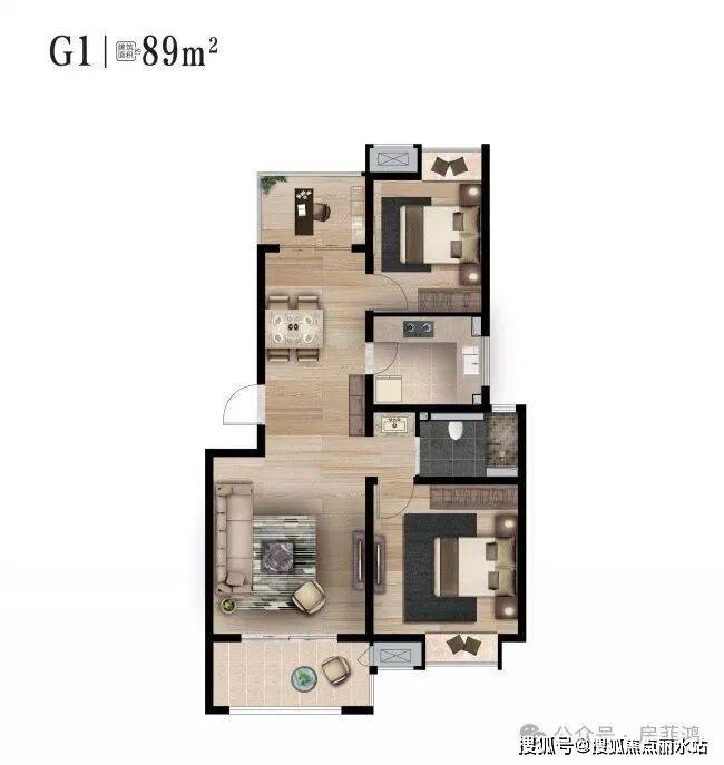 【66# 90户型】8层洋房 三房两厅一卫