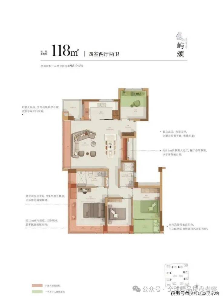 118㎡户型则拓展了7个飘窗与2个阳台,其室内使用面积可与市面上部分139㎡户型持平。