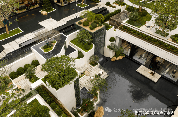 立体的、全境洄游的园林,下沉庭院、镜面水院、阳光草坪,以多维垂直的角度,诉说着生活与风景的立体交融。