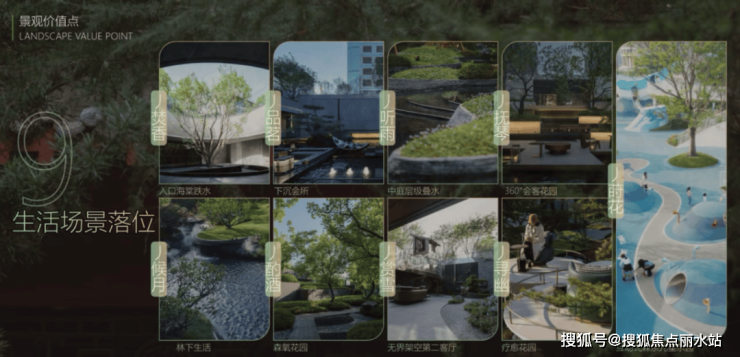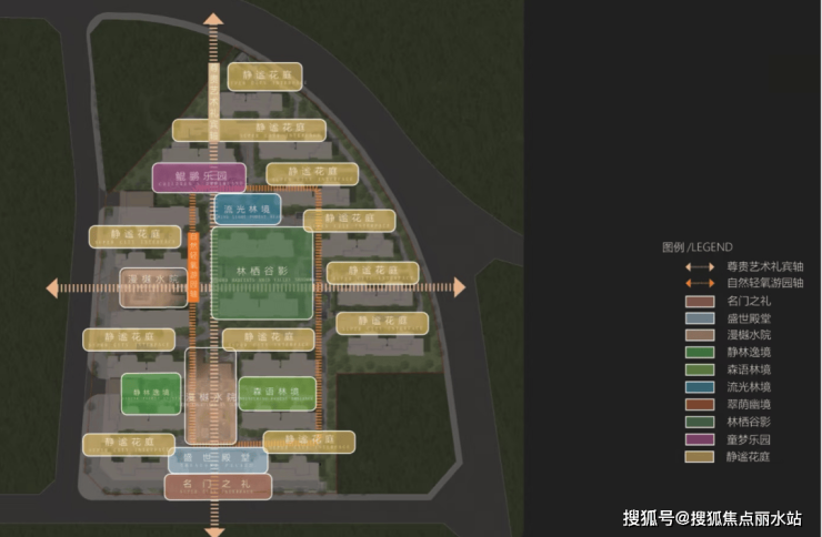 【园林设计】:约4.1万㎡“两轴十境”东方雅奢园林,“虹夕诺雅”酒店式度假空间,并引水入园,打造约3160㎡艺术社交水上会客厅;