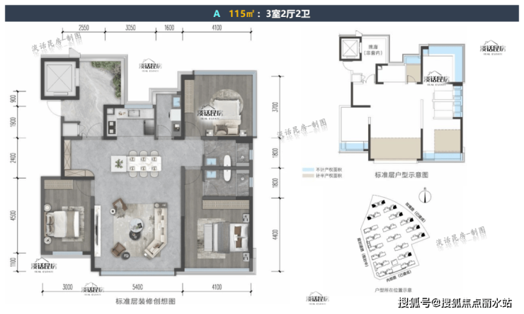 【115㎡ 】:3室2厅2卫,端户,赠送面积约27㎡,带入户花厅;