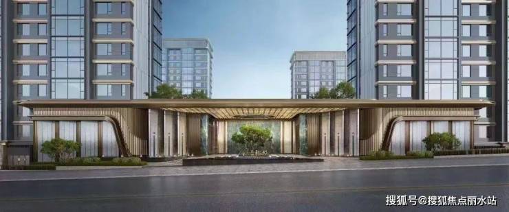 【小区大门】:宽约66M,爱马仕灰+普拉达绿奢石;