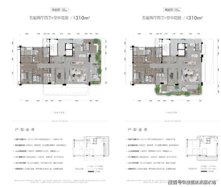 重庆长嘉外滩|国瑞·长江赋建面约310㎡半岛院墅重新思考户型空间的全新表达,革新呈现2梯1户双重入户,这里不是简单的过渡空间,精心雕琢间,开辟出一方微世界,仿佛是酒店大堂到家的从容切换;LDKG复合宽厅,以约91㎡奢阔方厅与约3.6米阔绰层高,让生活场景有了更多可能。