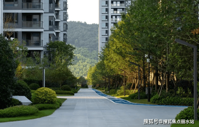 在高层和合院之间打造了一条约 300 米的娜塔栎树阵,二期最北面有樱花大道。小区内部还规划有全龄段儿童天地、景观会客厅、主题架空层、阳光草坪及游廊、回环式健康跑道、滨水游步道等设施,满足业主休闲需求。