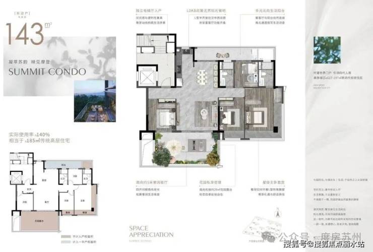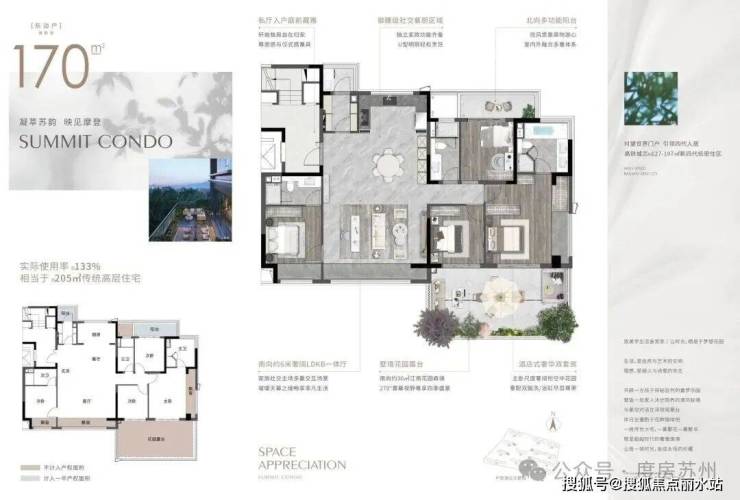 项目位于齐门北大街和马泾路交叉处东南侧,共打造了14栋四代洋房和小高层住宅,其中3栋8F住宅、6栋10F住宅、2栋11+1F住宅、3栋17F住宅,小高层建面约127㎡,洋房建面约143㎡ 、170㎡ 、197㎡,全是四代宅,户户独享露台,超大庭院赠送。