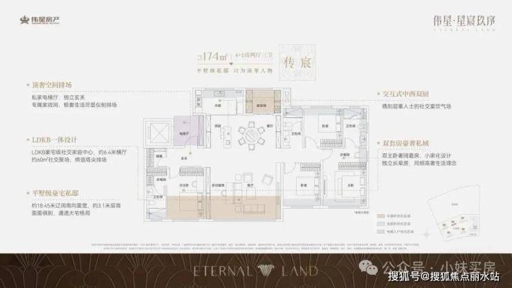 顶奢空间排场一应俱全,约174平就实现了市面上200+平户型的跃级享受,毫不夸张的说,伟星·星宸玖序的产品设计已经是next level了。