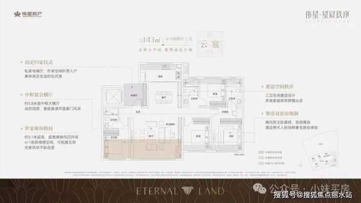 同样是做四代宅,伟星·星宸玖序的独到之处就在于,它每一个户型都做出了跃级的豪宅尺度感。