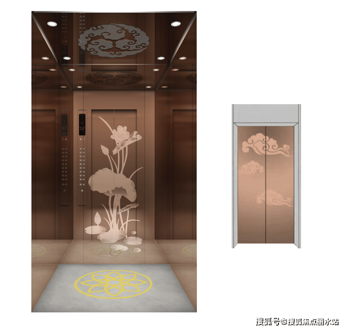 根据业主家里装修风格,伊萨电梯专门设计了一台4层4站4门400公斤的荷韵吉祥的别墅电梯。整个轿厢的装修风格选用简洁亮丽的玫瑰金镜面不锈钢加玫瑰金镜面蚀刻莲花的镜面轿厢,简洁而华贵,轿厢空间放大。轿厢拼花荷花大理石,轿顶祥云蚀刻。电梯配置ARD断电平层应急救援装置、一键呼叫功能,卧式迷你小型永磁同步主机,呈现绿色智能的别墅电梯享受。