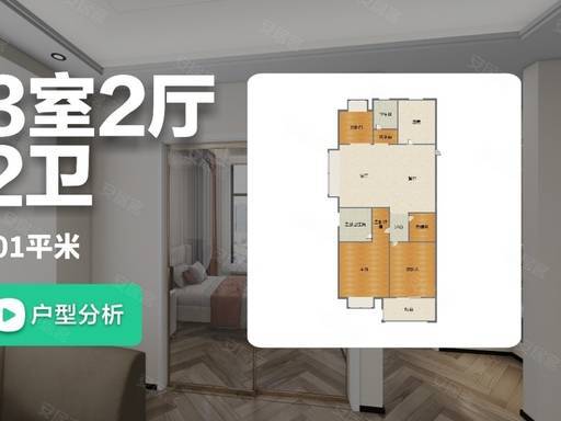 建面约 100-101㎡三房两厅两卫:改善主力户型,总价约 590-610 万,主卧采用套房设计,带独立卫生间与衣帽间,保障主人私密性与舒适度。户型南北通透,双卫配置避免早高峰拥堵,客餐厅一体化设计,空间开阔,适合三口之家或二胎家庭,无论是日常居住还是亲友小聚都能从容应对。