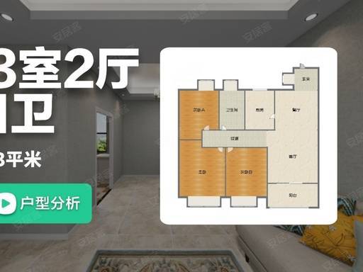 建面约 93㎡三房两厅一卫:紧凑实用三房,总价约 400 万起,适合刚需进阶家庭。三开间朝南设计,采光面充足,动静分区明确,休憩与活动空间互不干扰;客厅连通阳台,延伸空间感,三个卧室均带飘窗或开窗,保证室内通透,满足一家三口居住需求,是板块内高性价比三房选择。