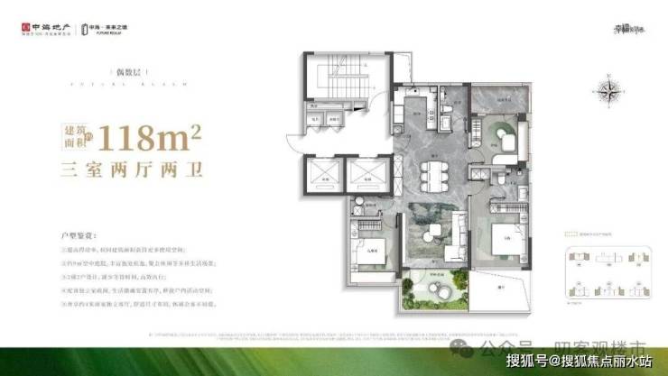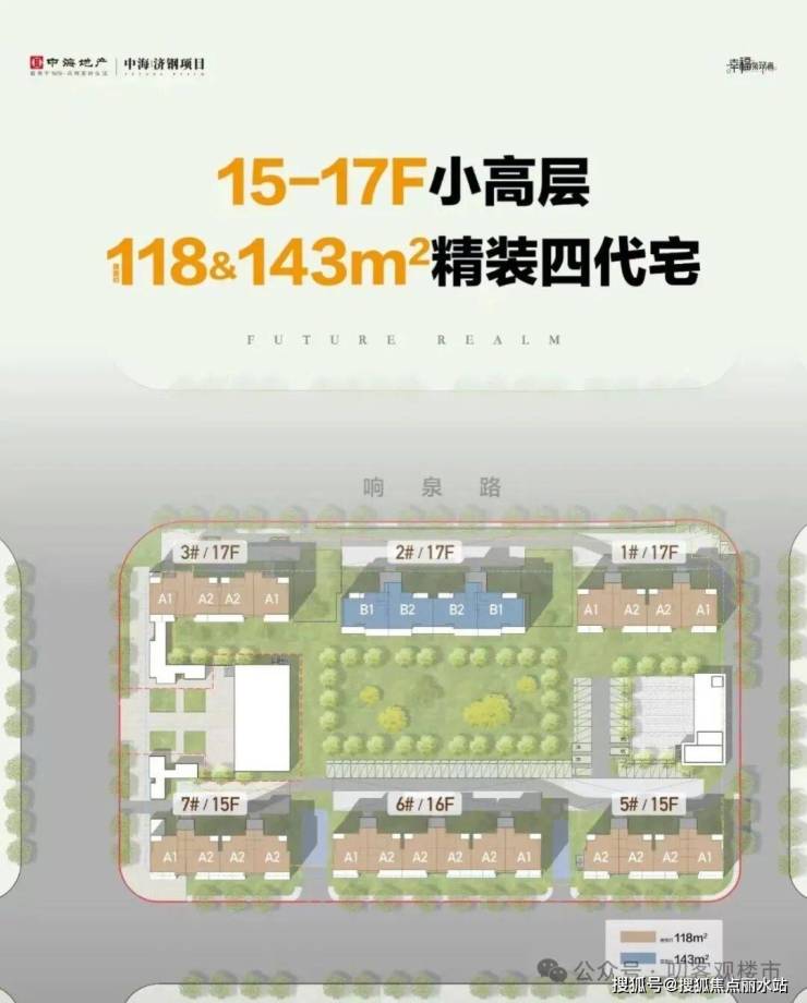 【项目规划】6栋15-17层小高层,精装,415套,户型为118平、143平,都规划为精装四代宅。