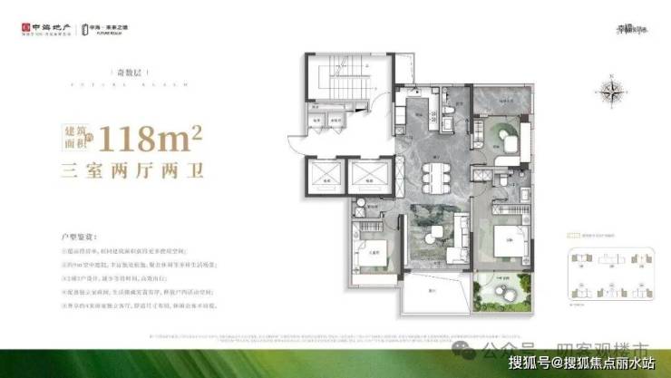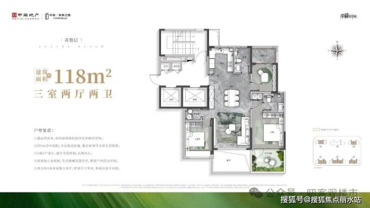 118㎡户型:公摊24%,得房率约90%