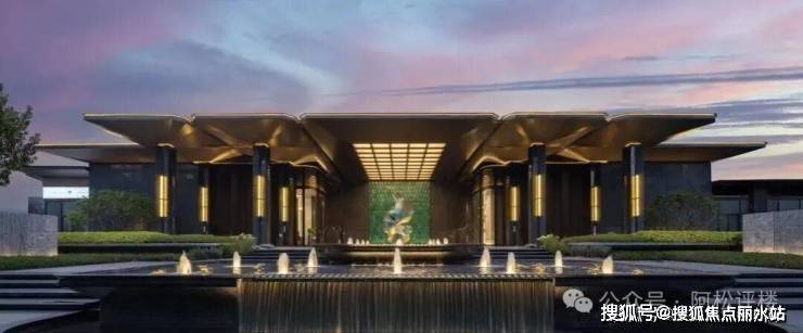 再如,入口处中央水景搭配两侧梯级入口,取意法泮池状元桥;宽约60米、高约9米的仪仗大门,混搭从贡院牌坊中提炼出的“八门五柱”设计,既美观大气,又暗含“跃龙门”的美好祝福。