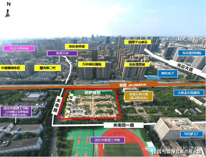 北侧为武九铁路、关南园四路、万科城花璟苑、光谷理想城等;