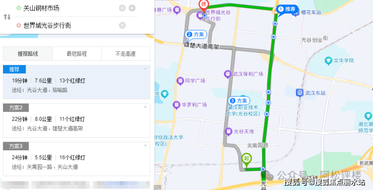 自驾:该项目由关南园一路向东不远就是光谷立交,向西可以上关山大道并连通三环线,向东上光谷大道高架、三环也都比较方便。
