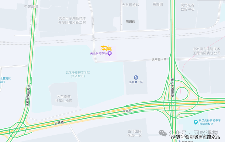 该项目位于武九铁路以南、关南园一路以东地块,属于三环内关山核心板块,也属于关山大道沿线,与光谷天地直线距离约700多米,靠近光谷知名产业中心光谷软件园和光谷金融港。