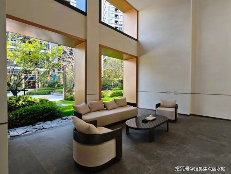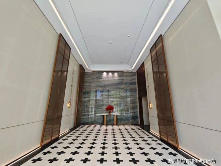 再往前走,到了楼栋的架空层——全豪装挑高空间。这也是天樾玺与之前其他交付高档小区,拉开差距的地方。