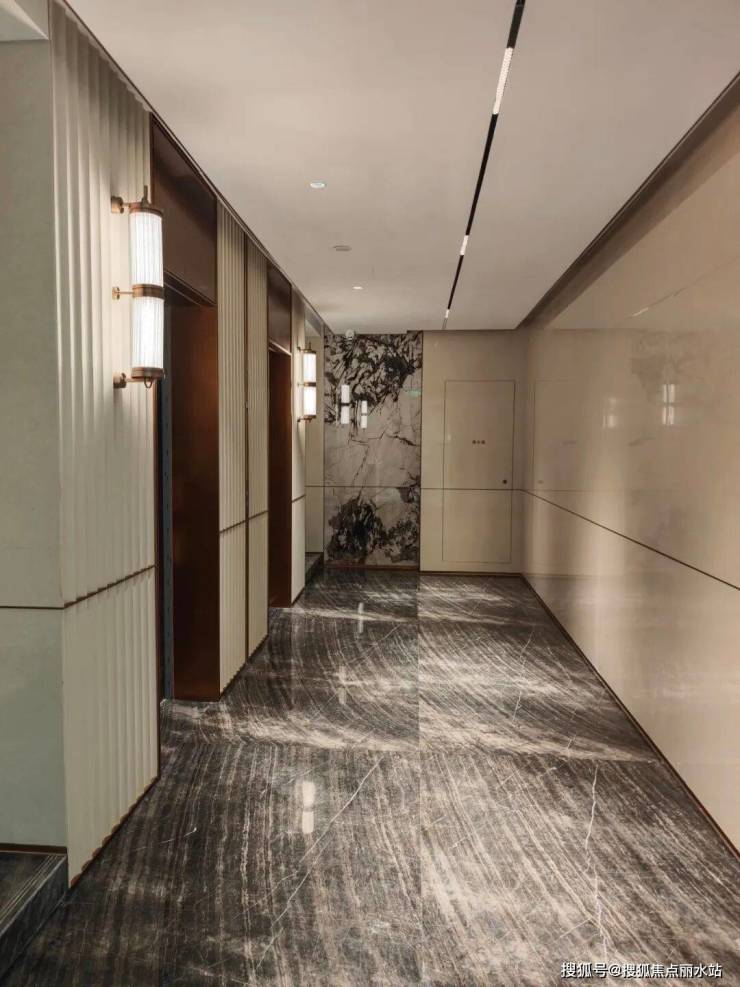 标准层的侯梯厅,墙地面的饰面材料以瓷砖为主,和其它普通改善型楼盘差不多,归家的最后几米,壕味没有跟上脚步:
