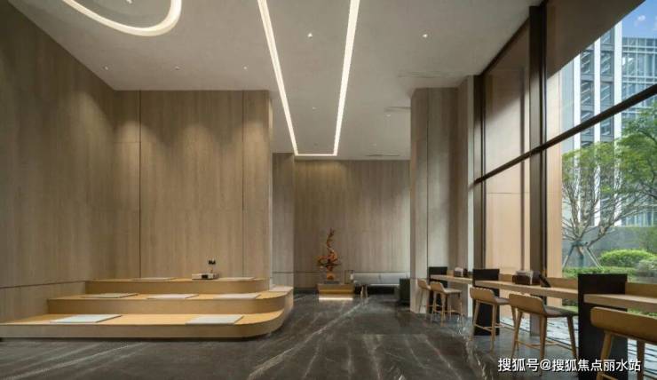 前文我们提到,商品房地块内的架空层,部分为全封闭式落地玻璃,整体营造上更为豪华。